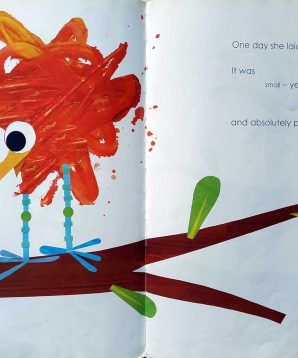 Splotch is a small bird who lives high up in a tree. One day, she lays an egg. It’s small yes and very spotty, but absolutely perfect in every way! This is the story of Splotch and the adventure of her roly-poly egg. Follow the dotted line and see where it goes. Along the way, find lots of animals and a butterfly on every page. Accented with spot lamination, the roly-poly egg appears to leap from the pages of this brilliantly illustrated picture book. When Splotch’s egg finally cracks, children can lift flaps to find a colorful surprise.