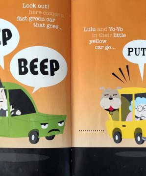 Here comes Lulu and her dog Yo-Yo, out driving in their little yellow car that goes Putt Putt. Look out! Here comes the fast green car. In a modern retelling of the Tortoise and the Hare, Lu Lu with help from Yo-Yo outwits the pushy drivers that clog the road.
