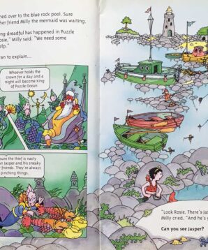 In this book, Rosy’s friend, Milly the mermaid, needs her help. A naughty merman named Jasper has stolen Puzzle Ocean’s king’s crown! Will she be able to save Puzzle Ocean?
