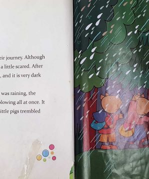 The three little pigs aren’t so little anymore, so Mama Pig tells them it’s time they go out into the world on their own. It’s a dark and scary night in the forest, but they each manage to build a house. One is made of straw, one is made of wood, and one is made of strong bricks. The three little pigs feel safe in their cozy new homes, until a hungry wolf comes for a visit!