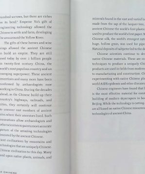 Focuses on the discoveries and inventions of the ancient Chinese civilization in the areas of transportation, agriculture, architecture, science, and technology.