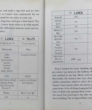 Pearl’s older sister Lexie is in eighth grade and has a boyfriend. Pearl’s only boyfriend is the family’s crabby cat, Bitey. Lexie is popular. Pearl is not, mostly because of the embarrassing Three Bad Things that happened in school and which no one has forgotten. Everything Pearl does seems to drive Lexie crazy. On top of that, their grandfather is moving into their family’s apartment and taking over Pearl’s room. How will these sisters share without driving one another crazy?