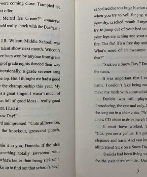 Adam’s band, Sick on a Snow Day, is challenged by more than just an unusual name: Adam is mistakenly accused of cheating on a test and must maintain a clean record and B average if he wants to stay in the band. When lead singer Daniela Alfredsson gets hit with stage-fright at the last minute, Adam creates her alter-ego, Alfred Danielsson, the Swedish exchange student, who becomes an instant tween sensation. And the one kid who holds the key to both Adam’s and Daniela’s fates is Adam’s nemesis, the dorky Eldrick Hooperberg. All he wants in return is to be part of Sick on a Snow Day.