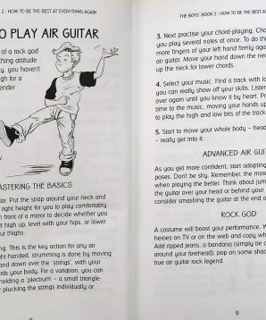Covers topics such as: how to ride a camel; how to do a rain dance; how to write a righteous rap; how to make your own letter seal; how to abseil; how to fall like a stuntman; how to dam a river; how to make your own flag and start your own country; how to escape from an angry bull; how to walk a tightrope; and how to make an igloo out of sugar.
