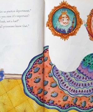 One day, a bedraggled Cinnamon is brought back to the castle in disgrace after swimming in the slimy lake and clambering up trees. But this time, instead of arguing, Cinnamon starts to sew, much to the delight of her stuffy parents. Has she changed? Is she going to be a “proper” princess and behave nicely and make beautiful dresses for herself? Or is she planning something very, very different, right under their noses?