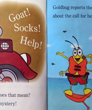 Help Huckle Cat solve a mystery about a radio message! A call for help on the police radio sounds like “Goat… duck… socks… HELP!” But what does that mean? Huckle finds out that different words can sound alike, and that the message isn’t really about goats, ducks, or socks at all! But will he solve the mystery in time?