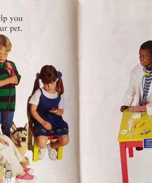 A child pretends to be a veterinarian who heals sick pets.