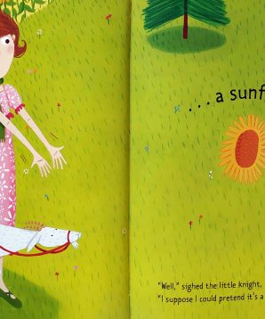In a land filled with fire and smoke and endless fighting, where knights fight dragons, there lives a little knight who wants to be big like the others, and fight like the others, and have a sword like the others. But his mother won’t let him. Instead of a sword, she gives him a sunflower, which, as it turns out, can be mightier than a sword.