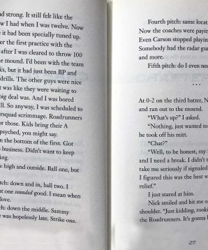A new pitcher has joined the team. Rumors fly that his dad made him have elective elbow reconstruction surgery (known as Tommy John surgery in baseball) two years earlier. When a teammate ends up with a concussion after getting hit with a fastball in practice, the new guy is persona-non-grata in the clubhouse, but when the team goes deep into extra innings in a championship and there’s nobody left in the bull pen, the coaches only have one choice.