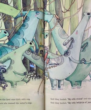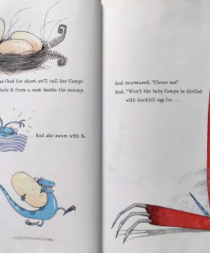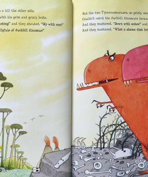 Everyone knows that tyrannosauruses are big and scary, so when a placid duckbill dinosaur’s egg ends up in the wrong nest, confusion is sure to ensue! When the baby dinosaur hatches out, he’s so out of place that his grisly big sisters call him Tyrannosaurus Drip. Poor little Drip: all he wants is a quiet life munching on water weed.