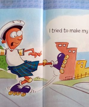 A child putting on roller skates for the first time finally teaches them to wait! Read about this and three other hilarious stories in this amazing storybook.
