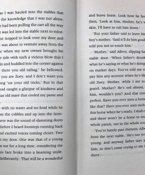 In 1914, Joey, a beautiful bay-red foal with a distinctive cross on his nose, is sold to the army and thrust into the midst of the war on the Western Front. With his officer, he charges toward the enemy, witnessing the horror of the battles in France. But even in the desolation of the trenches, Joey’s courage touches the soldiers around him and he is able to find warmth and hope. But his heart aches for Albert, the farmer’s son he left behind. Will he ever see his true master again?