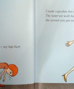 This little girl and her mum are almost home, but she is soooooo tired! Her legs hurt, and even the lure of fresh cupcakes isn’t enough for her to take another step. Why can’t the house have legs and walk to them? For that matter, what if everything had legs?