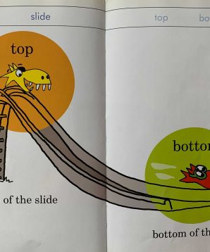 The dogsharks are all around the playground – bouncing, climbing, and digging. As kids follow these colorful creatures on the move, they’ll have so much fun they won’t even realize they’re learning prepositions: in, out, over, under, around, and through.