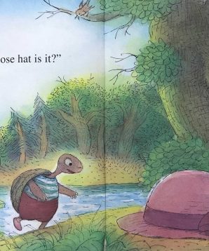 When a little turtle comes across a lost hat, he is determined to find its owner. He asks Mouse, and Rabbit, and even Crocodile if it belongs to them, but they all say it isn’t theirs. Whose hat can it be?