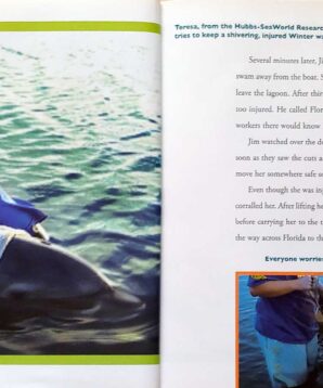 When Winter was a baby, she was rescued from a crab trap, her tail seriously damaged, and rushed to Clearwater Marine Aquarium. Winter survived, but eventually her tail fell off. Then Winter received a prosthetic tail. It was very challenging but now Winter is thriving and using her new tail with great command.
